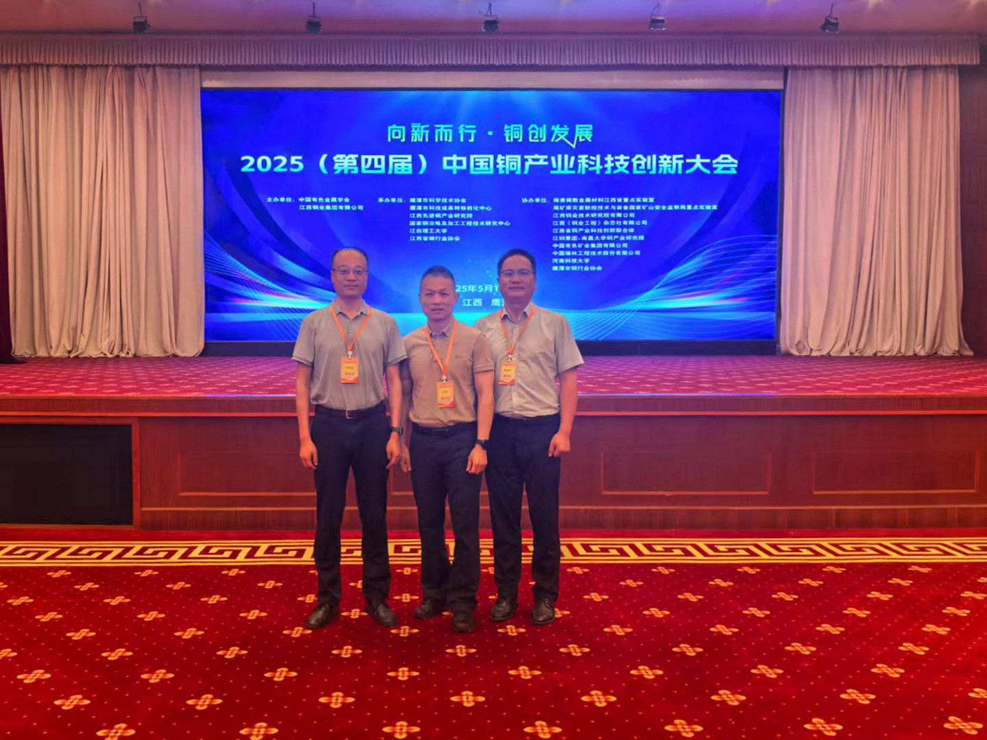 5月16至18日,中国瑞林党委委员、监事会主席文哲带队参加由中国有色金属学会和江西铜业集团有限公司联合主办、中国瑞林协办的“2025(第四届)中国铜产业科技创新大会”。会议以“向新而行,铜创发展”为主题,聚焦铜产业科技前沿、绿色发展与数智化转型,吸引了全国有色金属领域相关院士、专家及企业代表参与交流。