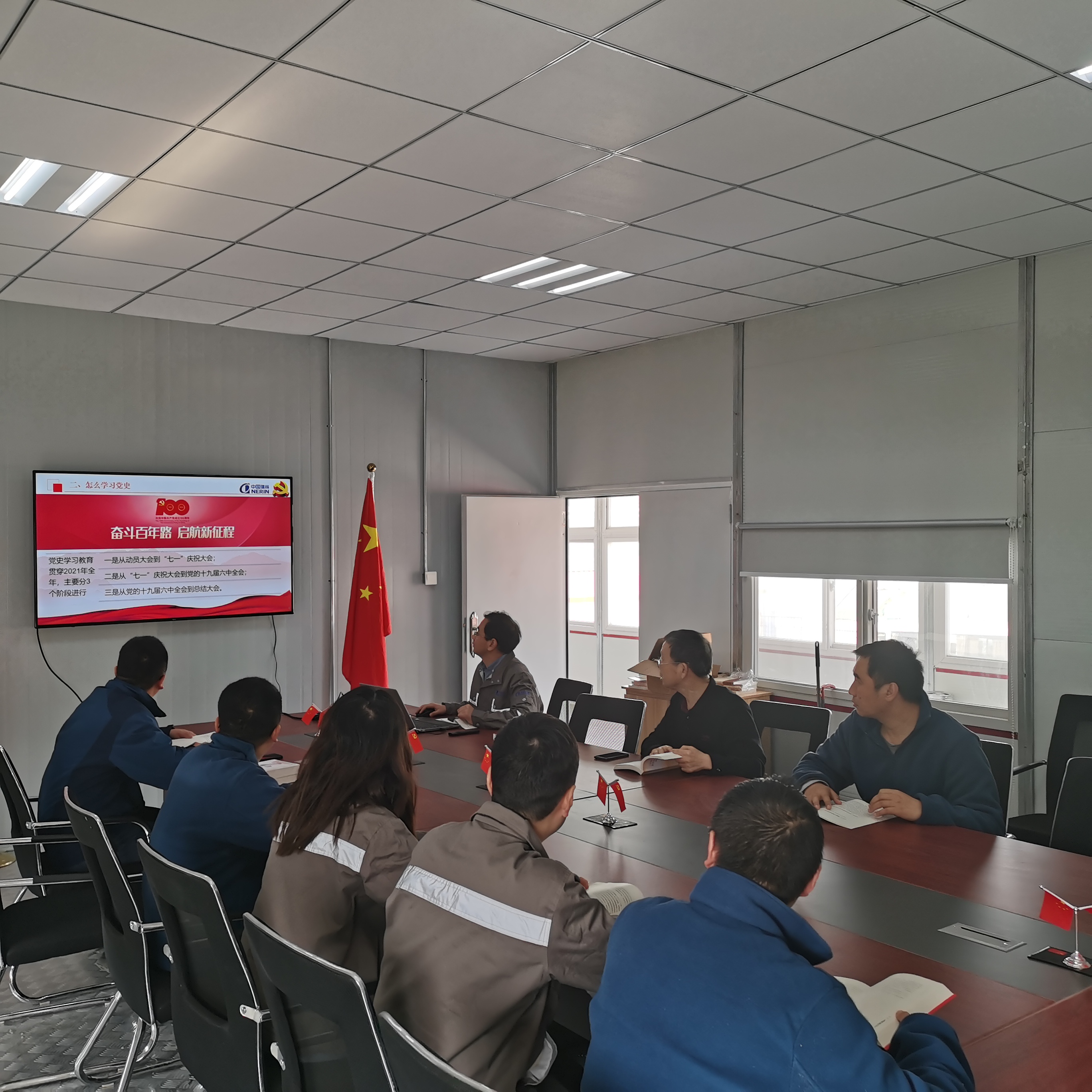 2021年4月26日上午10:30,根据公司党委《关于开展党史学习教育的实施方案》的部署,烟台项目临时党支部于搬迁新建18万吨阴极铜节能减排项目现场党员活动室,开展了第一次党建学习活动,践行初心使命,时刻不忘知党史,一心一意跟党走。