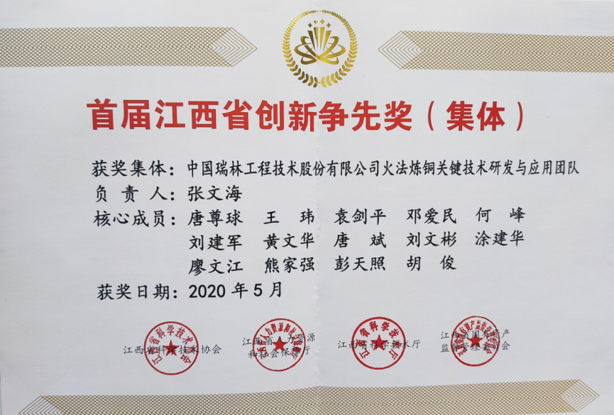 中国瑞林“火法炼铜关键技术研发与应用团队”获首届江西省创新争先奖
