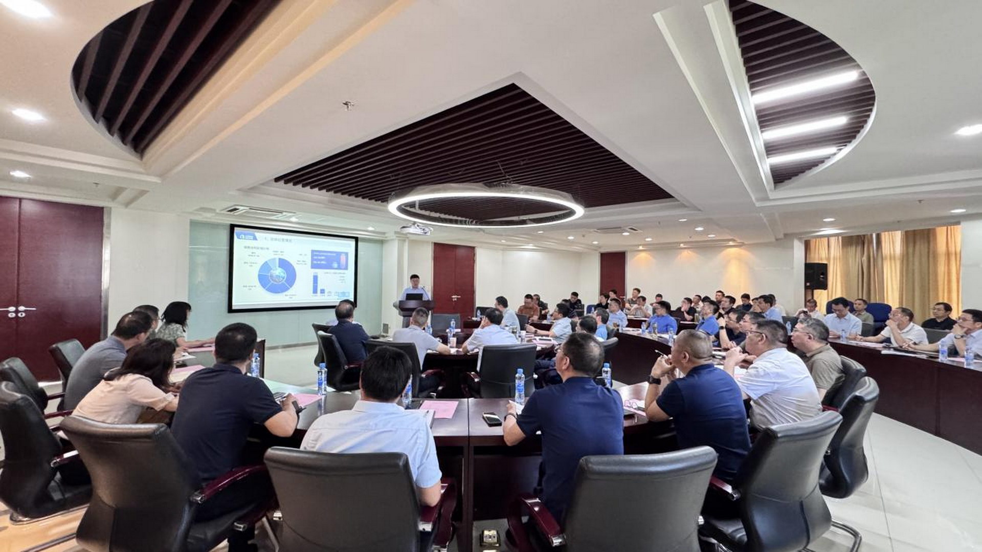 7月 11 日,中国瑞林召开2025年度年中生产经营调度会。会议聚焦海外市场突破、大项目攻坚、NDI数智化解决方案推进及合规安全管理等议题,全面总结了上半年生产经营成果,并对下半年重点任务进行系统部署。公司党委书记、董事长章晓波,党委副书记、总经理吴润华等领导班子成员,总监、各部门主要负责人、党支部书记出席