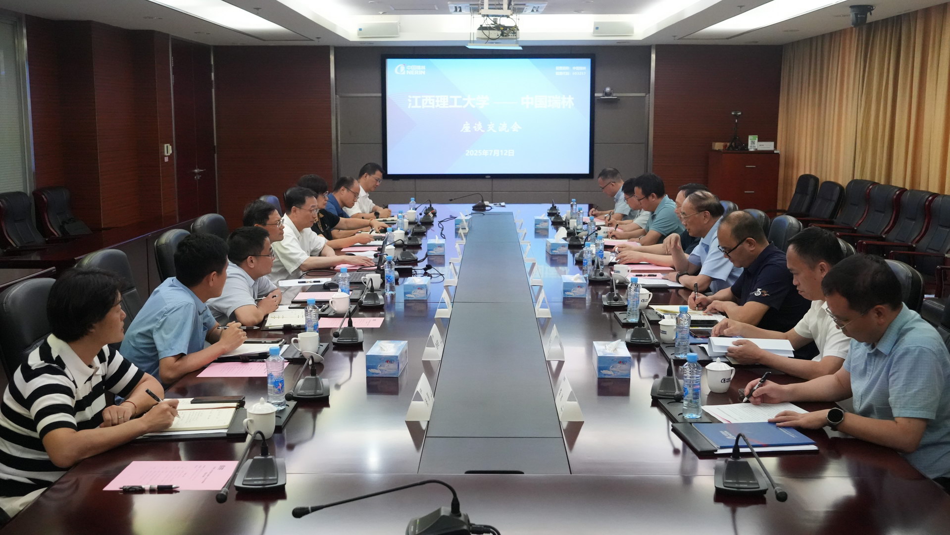 7月16日,冶金工业规划研究院党委书记、院长肖邦国一行到访中国瑞林。中国瑞林党委副书记、总经理吴润华热情接待了肖邦国一行,双方进行了友好的座谈交流。