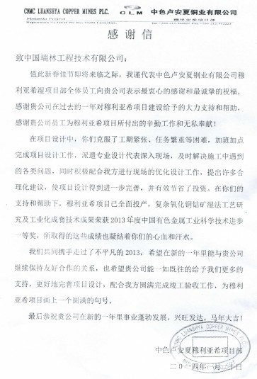 FAVORABLE COMMENTS FROM CLIENT ON LUANSHAY MUL...