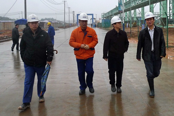 董事长、总经理章晓波,副总经理徐赤农视察梧州项目建设情况