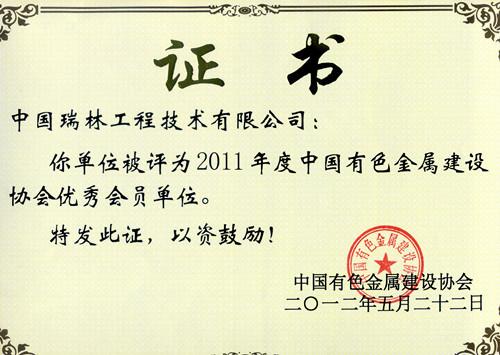 5月22日,中国有色金属建设协会《关于表彰优秀会员单位和优秀联络主任(联络员)的决定》(中色建协字[2012]25号),中国瑞林荣获中国有色金属建设协会授予的“优秀会员单位”荣誉称号。