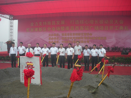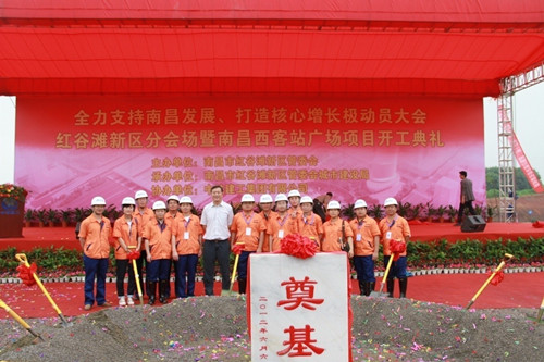 6月6日上午,作为全省支持南昌发展、打造核心增长极动员大会的分会场活动之一,南昌铁路西客站广场项目开工仪式在红谷滩新区举行。上午10点50分,随着主会场江西省委书记苏荣一声令下,南昌西客站北广场礼花齐放、鼓乐齐鸣。西客南北广场一期工程正式开工,公司副总经理肖利平应邀出席了开工典礼仪式。