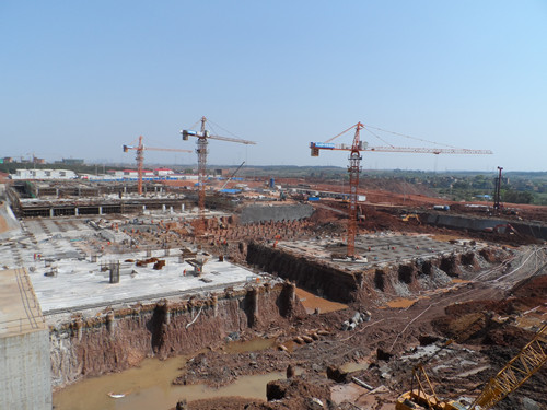 南昌西客站南北广场工程总投资22亿元,自2012年6月正式开工以来,中国瑞林代建项目部克服了工程边施工边完善设计、施工工期紧、下穿地铁同步建设和雨天多等困难,认真组织,科学管理,工程建设工作进展顺利。截至3月底,北广场已完成了主体结构施工,现已进入安装和装饰工程施工,力争实现2013年9月30日竣工目标;南广场除2#线地铁部位外基本完成桩基施工,A、B区已于3月初进入负二层主体施工,按计划于2013年12月底全面竣工。