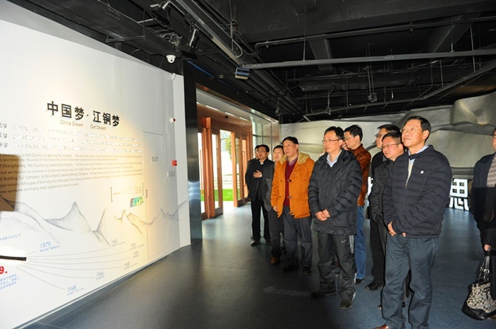 龙子平总经理陪同章晓波董事长一行参观新建成的江铜展厅