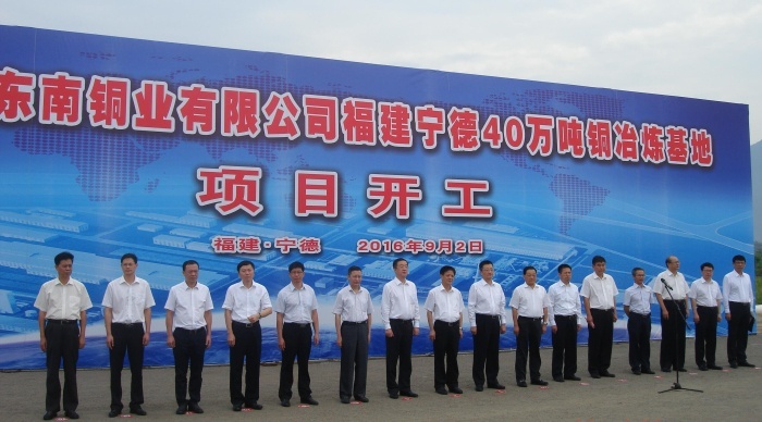9月2日,由中国铝业公司和福建省人民政府共同出资的中铝东南铜业有限公司福建宁德40万吨铜冶炼基地项目在福建省宁德市(漳湾)临港工业区冶金新材料产业园举行了开工仪式。