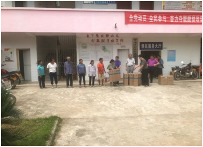 党员代表们向贫困户发放生活物品