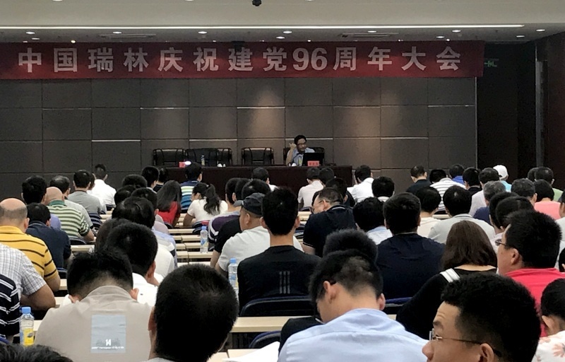 6月30日,中国瑞林召开庆祝中国共产党建党96周年大会,缅怀党的历史,共庆党的生日。在昌的公司领导班子成员、全体党员、各部门室副主任以上人员近300人参加庆祝活动。会议由公司党委委员、工会主席、纪委书记文哲主持。