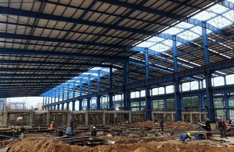 在电解车间施工现场,吴润华总经理实地查看了施工进展,详细了解了项目建设的安全、质量、进度控制等情况,并要求大家在项目建设过程尽职尽力、精心务实,在保证安全、质量的前提下实现项目建设总体目标。