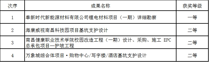 工程勘察成果评价获奖项目表