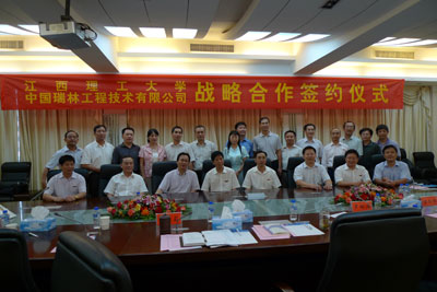 熊正明书记对章晓波董事长一行莅临学校表示热烈欢迎,并介绍了江西理工大学的发展历史,以及在教学、科研等方面所取得的优异成绩,章晓波董事长介绍了公司历史沿革和改制以来所取得的业绩。双方就人才交流、科研合作、成果申奖、优势互补等方面作了深入地交流。双方一致认为:瑞林公司和江西理工大学合作历史悠久、合作基础坚实,相信通过这次签订战略合作协议,一定能促进双方创新、互利、共赢,让知识资本发挥最大价值,成为有色行业合作的优秀典范。最后,双方签署了《战略合作协议书》、《教师参加工作实践活动协议书》。