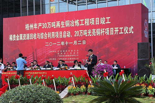 梧州年产30万吨再生铜冶炼工程举行竣工仪式