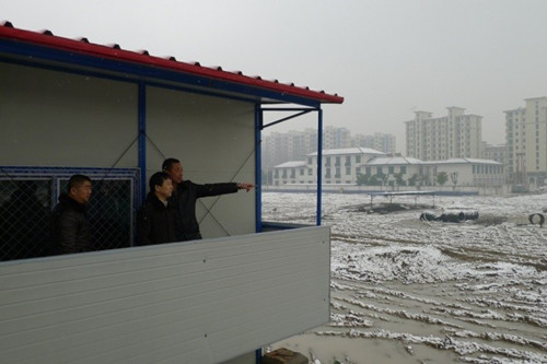 徐赤农副总经理冒着严寒和大雪,来到江苏淮安轮窑安置小区建设总承包项目现场。在听取了现场负责人的工作汇报并巡视了施工工地后,徐赤农副总经理表示:现场的同志工作在第一线,很辛苦,向你们表示诚挚的慰问和新年的祝福!同时叮嘱随行的公司职能部门的同志,要积极支持现场项目部的工作,为推进公司总承包业务的发展共同努力。