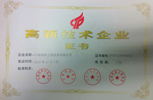 1月27日,江西省高新技术企业认定管理工作领导小组《关于公布江西盛富莱定向反光材料有限公司等35家高新技术企业复审名单的通知》(赣高企认发[2013]3号),中国瑞林再次被认定为高新技术企业。